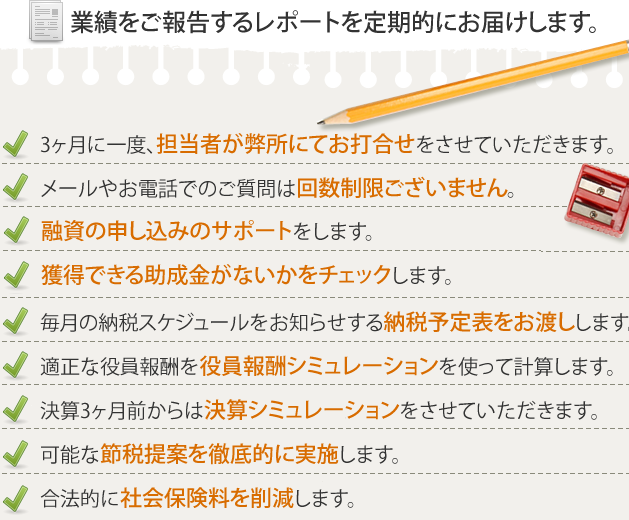 税理、経理だけでなく事業全体のビジネスパートナーとして末永いお付き合いをよろしくお願い申し上げます。